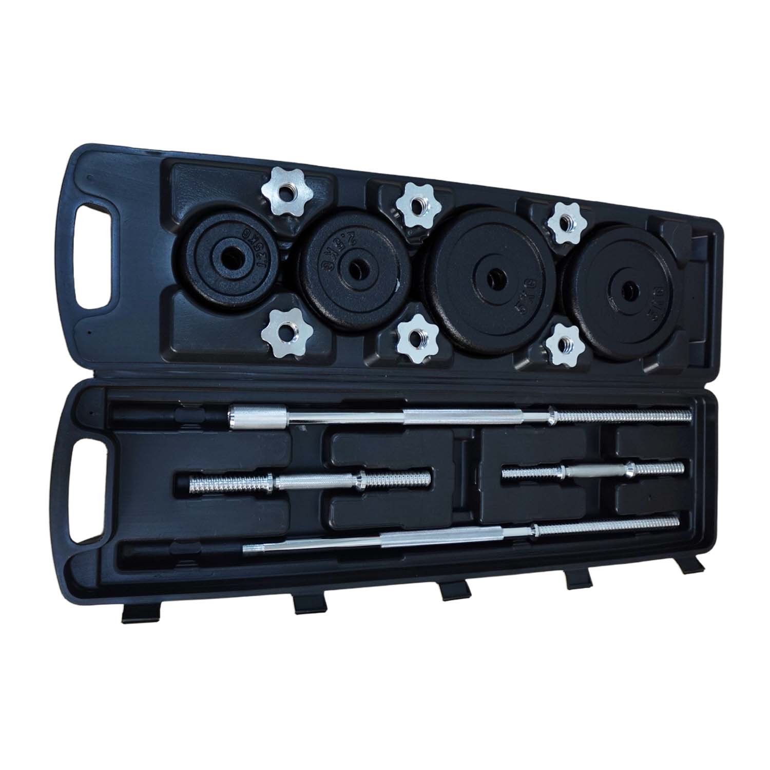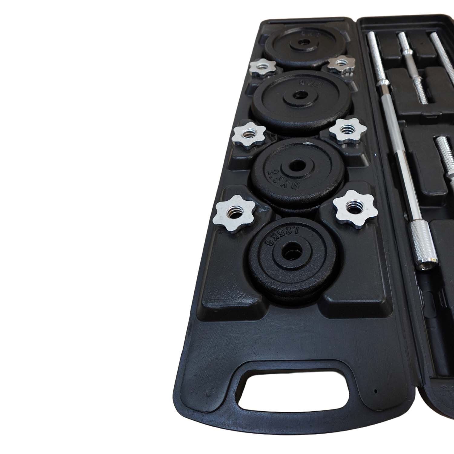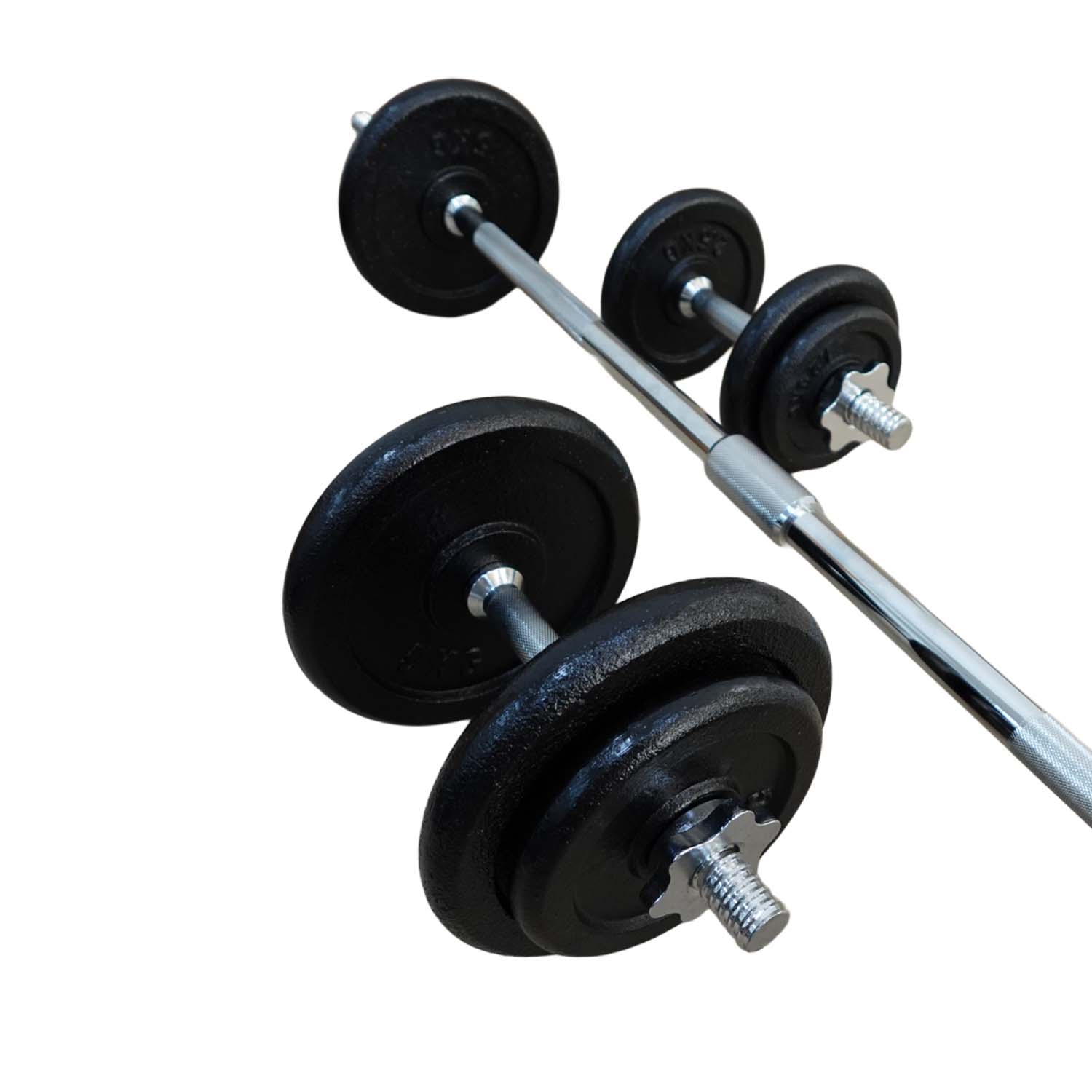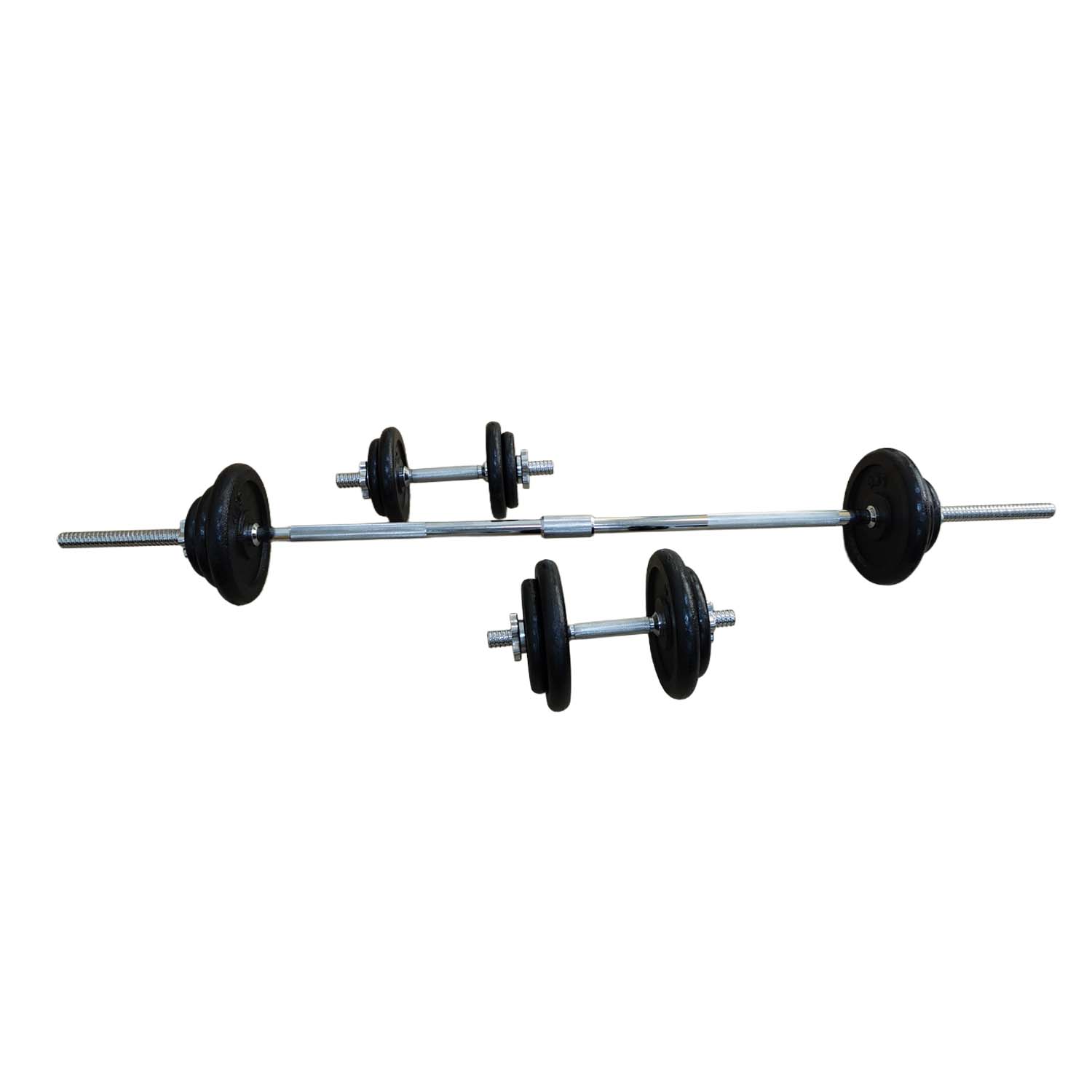 Juego de barra olímpica con acabado cromado y pintura negra de alta durabilidad. Diseñado para levantamiento de pesas profesional, ofrece excelente agarre y estabilidad durante entrenamientos intensos. El cromado protege contra la corrosión mientras mantiene un peso preciso y consistente. Ideal para gimnasios comerciales y atletas serios que demandan equipamiento de calidad superior. Construcción robusta que resiste años de uso continuo.