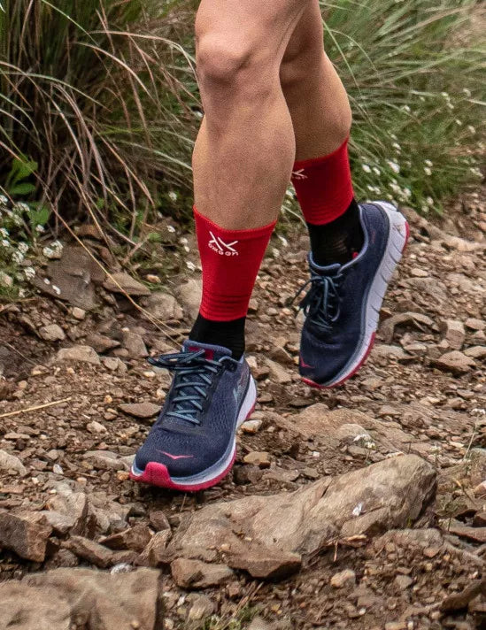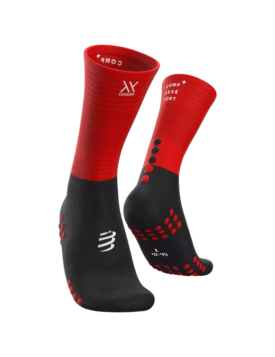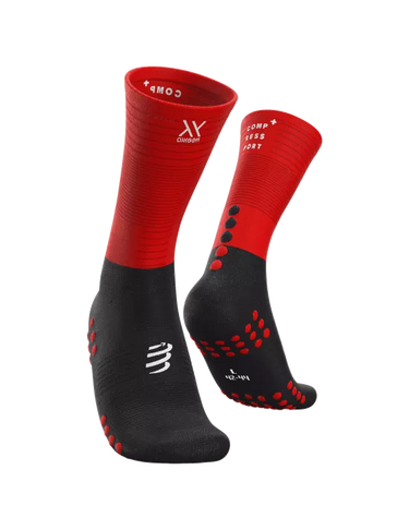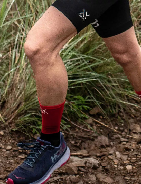 Calcetines de compresión media diseñados específicamente para corredores que buscan optimizar su rendimiento. La tecnología de compresión graduada mejora la circulación sanguínea, reduce la fatiga muscular y acelera la recuperación durante y después del entrenamiento. Su construcción ergonómica proporciona soporte en arco y talón, minimizando el impacto en articulaciones. El diseño en negro y rojo combina estilo con funcionalidad. Ideales para entrenamientos de resistencia, carreras de larga distancia o uso diario activo.