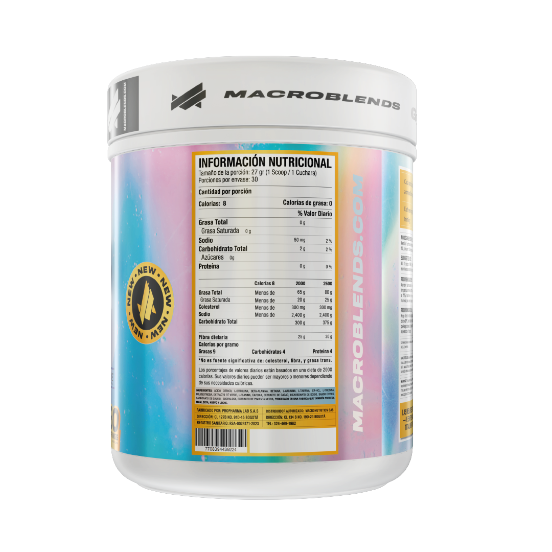 Prepárate para alcanzar nuevos niveles de rendimiento con RM Pre-Workout de Macroblends. ¡Empieza tu entrenamiento con la energía y el enfoque que necesitas para triunfar!